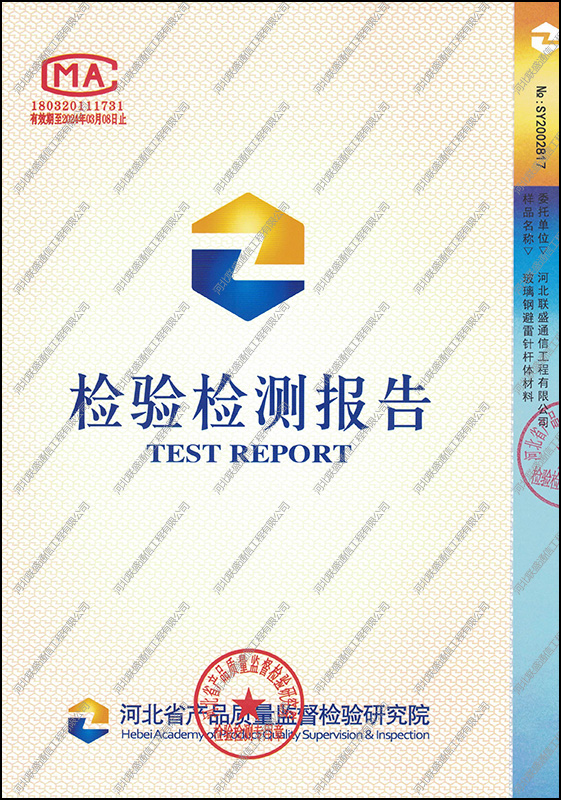 玻璃鋼避雷針檢驗檢測報告